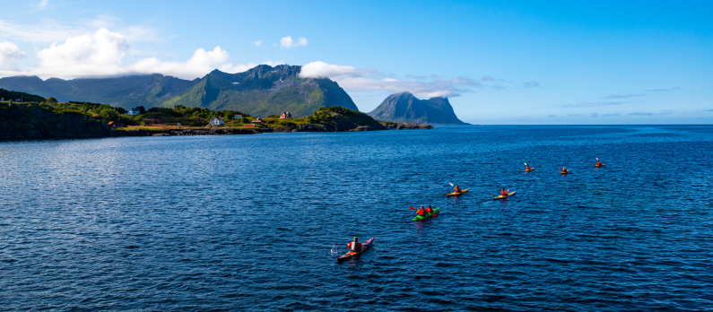 Vårt flotte land byr på fantastiske opplevelser og utsikter fra en kajakk, enten du vil oppleve den sjarmerende skjærgården på Sørlandet, det vakre fjordlandskapet på Vestlandet eller det turkisblå vannet i Nord-Norge, hvor flere steder er internasjonalt kjent for kajakkpadling.